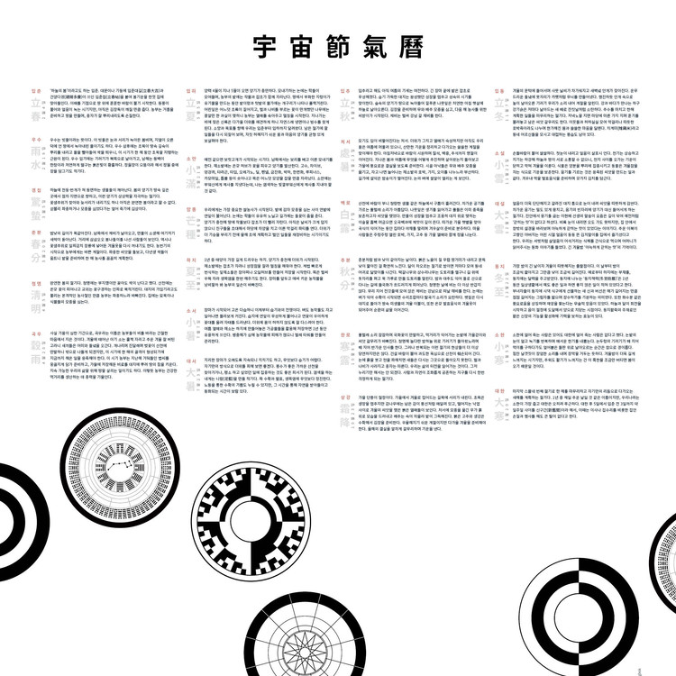 사계절 24절기의 반복속에 사라지기도, 태어나기도, 성장하기도, 태어나기도 하는 것들과 그 시기가 있다. 그 조화와 부조화의 섭리속에서 아름다움의 가치관이 바뀌고 우리 일상에 큰 변화를 주고 있다. 동지에 선물로 나누던 책력은 우주의 섭리와 소우주인 우리 인체가 하늘과 땅이 밀접하게 상응하는 가운데 자연의 변화와 섭리를 살펴 지혜롭게 살아가기 위한 우리 삶의 디자인을 가르치고 있었다. 우리 조상의 지혜가 거기 닿아 있었고, 반복되는 절기에 매번 같기도, 다르기도 한 변화를 몸으로 겪으면서 더욱 그 섭리를 이해하고 우리 생활에 커다란 반향을 일으키는 요소들을 책력처럼 절기마다 서술해 놓았다.